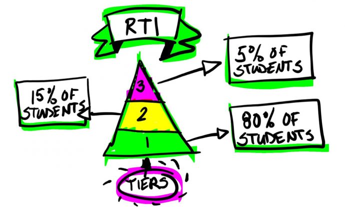 RTI (Response to Intervention), an MTSS (Multi-tiered System of Support), is the system public schools are using to identify children who are falling through the cracks and hopefully intervene before it’s too late. Schools triangulate a student’s level of need or Tier based on testing scores, curriculum-based measurements, and growth measures.